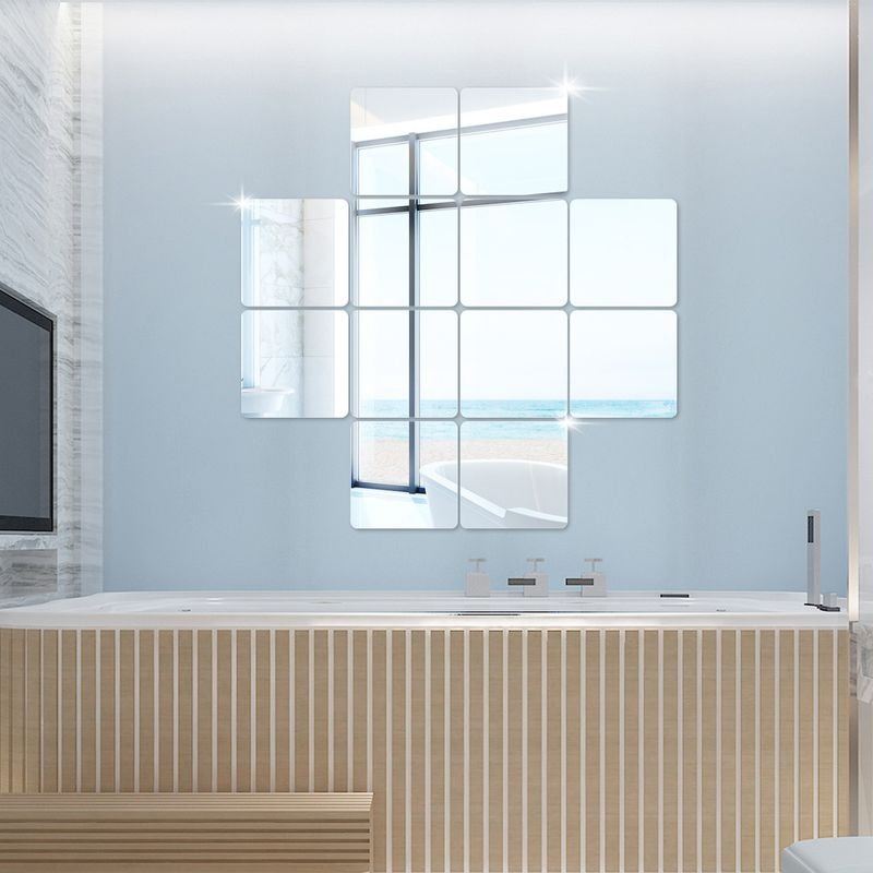Simple Creative Thick Acrylic 6 Pieces Square Mirror Wall Sticker Decoration quantity
