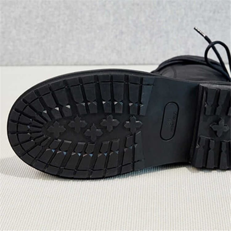 Size:4.5-9 Women Solid Color Lace-up Genuine Leather Zipper Boots